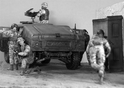 Mogadishu, 1993 (Blackhawk Down) 1/35th scale diorama featuring Tamiya Hummer with Dragon, Tamiya, and Warriors figures
