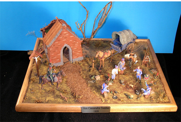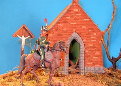 (54mm diorama featuring Historex figures and Verlinden chapel; built and photographed by Jim DeRogatis)